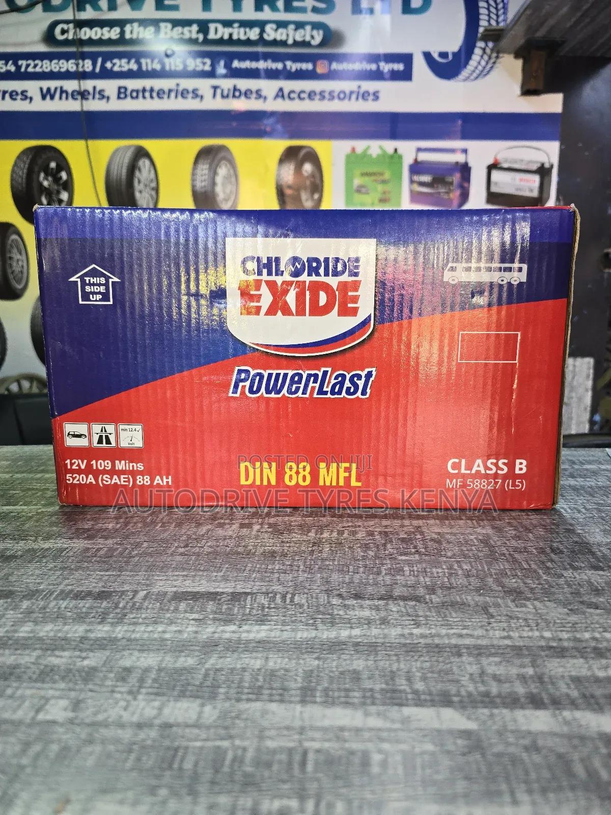 Din88 mfl 12v 88ah chloride exide powerlast. maintenance free and left positive terminal. 12 months warranty.